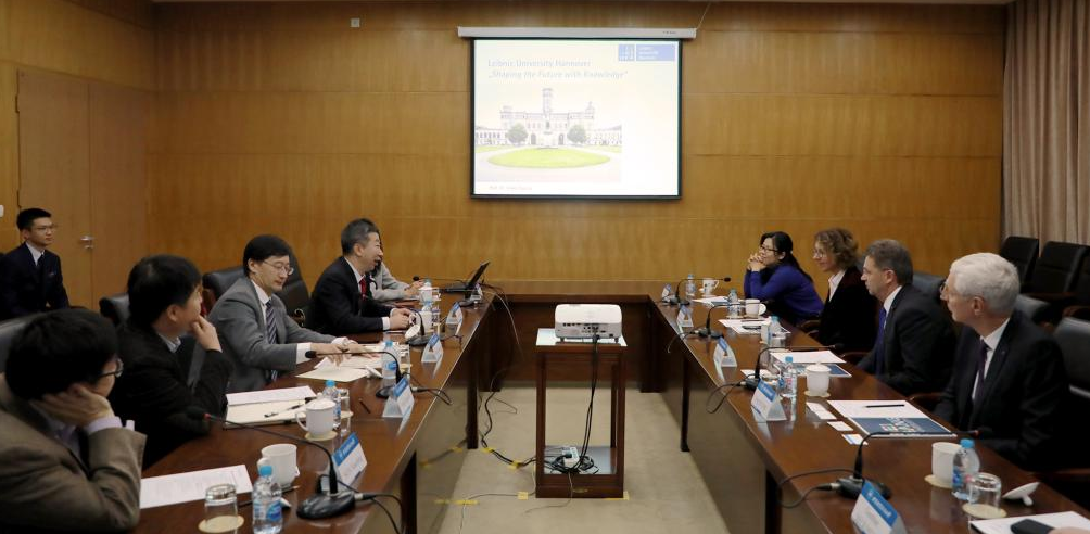王云鹏首先向汉诺威大学埃平校长一行表示欢迎,并简要回顾了两校自建立校级合作关系以来所取得的合作成果。沃克·埃平对北航的热情欢迎表示感谢,并重点介绍了汉诺威大学近年来在教育及科研领域所取得的成就。国际交流合作处李德玉处长介绍了北航在人才培养、科学研究及全球合作方面的整体情况。会谈中,双方围绕在航空、机械、电子、材料、生物医学工程等优势学科领域开展合作,推动建立校级学生交换项目、开展联合科研等议题交换了意见并达成共识。会谈结束后,沃克·埃平一行还参观了我校能源与动力工程学院以及电子信息工程学院相关实验室。