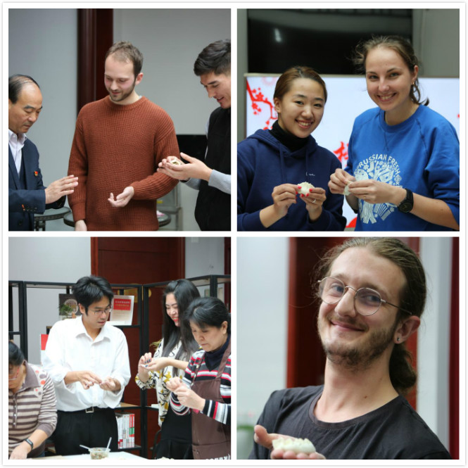 之后,北航社区的志愿者们手把手教留学生们制作中华传统美食——饺子。一开始学生们看到擀面杖、面皮、馅感觉不知所措,社区居民耐心指导如何放馅,如何捏边,如何包出形状好看的饺子,并讲解给学生们中国传统节日的习俗与来历。热腾腾的饺子出锅,学生们品尝自己的劳动成果,感慨“这是凝聚着十国情谊的饺子”。来自澳大利亚的孔子学院奖学金生说“我一定要好好利用在中国的这段时间,多了解中国文化”,很多学生也表示以后愿意参与北航社区的更多服务工作。
